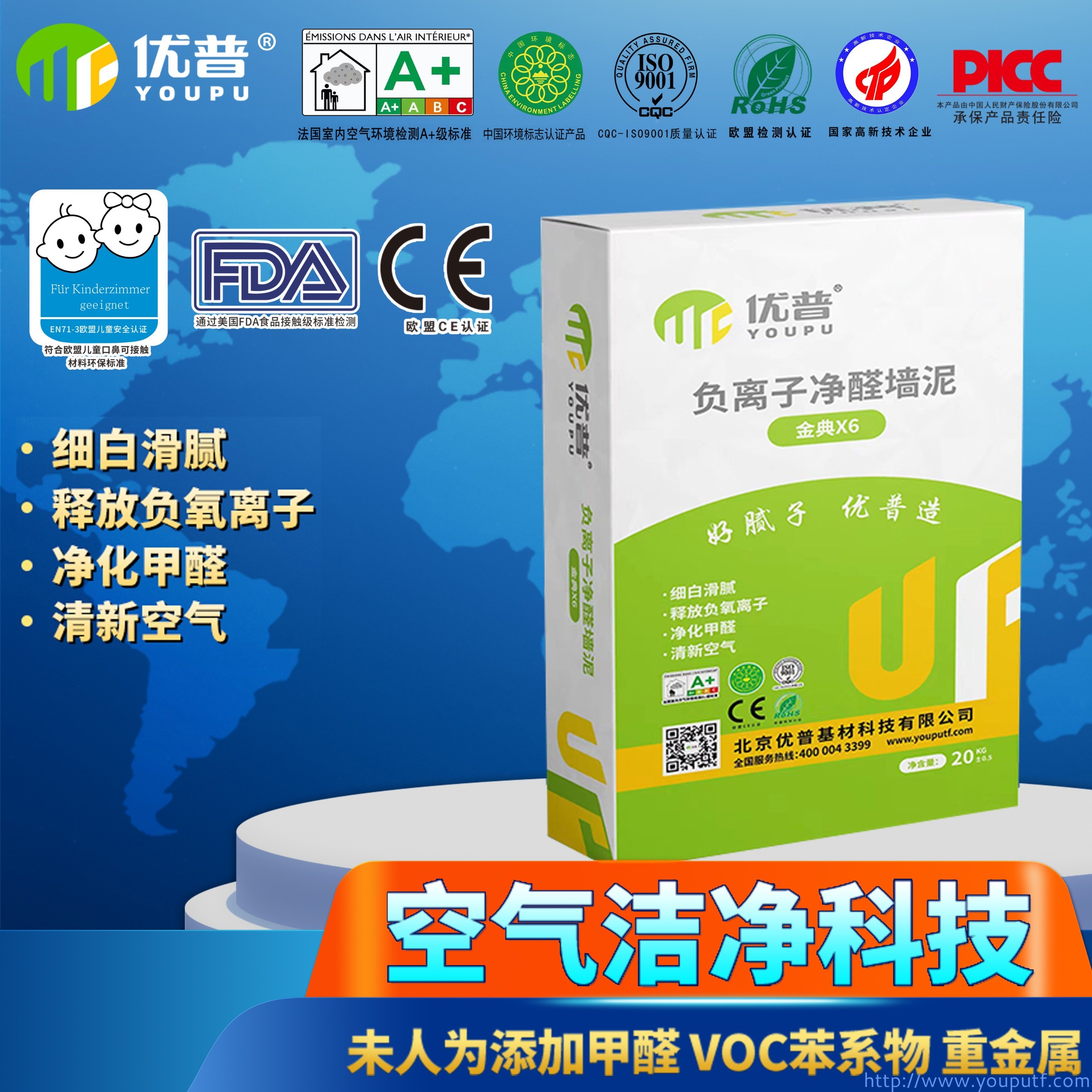 優(yōu)普金典X6型負(fù)離子凈醛墻泥